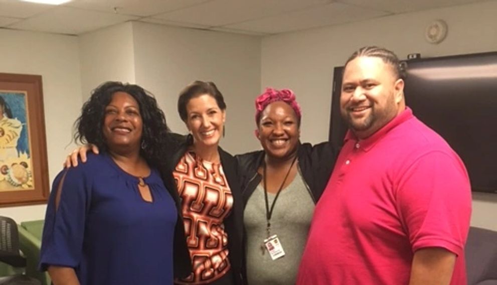 On the left (pic above) is Miriam, an East Oakland landlord who connected with a BACS case manager (Gary, far right), to help rent to client Fatima (my left).